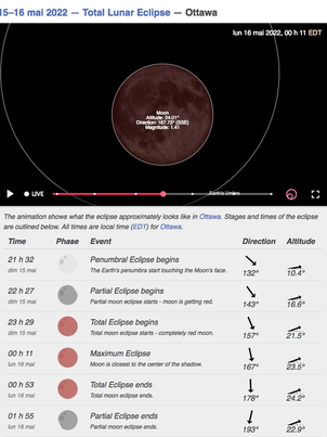 Dịp quan sát nguyệt thực toàn phần sắp tới là vào tháng 11 Tue, Nov 8, 2022 at 3:02 am. Hy vọng trời đẹp để nhìn từ đầu, vừa nhìn vừa hát Total Eclipse of the Heart!
