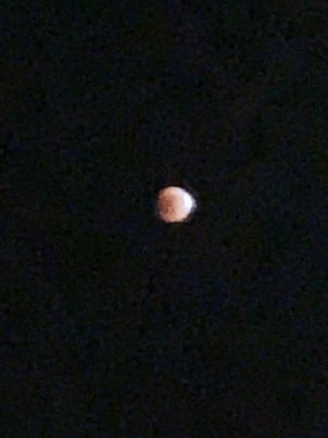 Tối 15-May vừa rồi có nguyệt thực toàn phần. Mình biết quá trễ, gần 11 giờ rưỡi mới ló ra coi thì mặt trăng đã bị che gần hết, còn một vành sáng trắng bên phải, nhìn như một chiếc nhẫn kim cương.