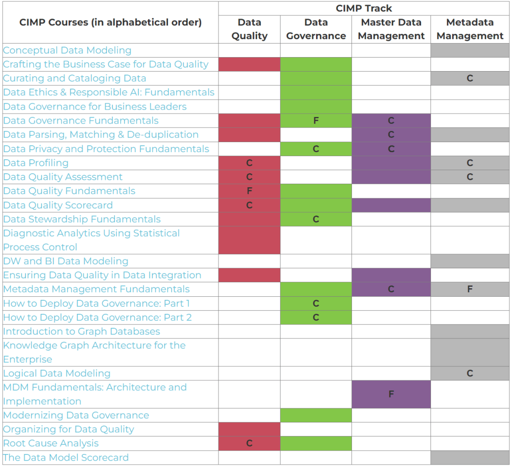 - Have at least five years of work experience in information management. For all CIMP tracks except Information Management Foundations, each day in a role within the chosen track counts as two days of experience (subject to approval by CIMP Board)