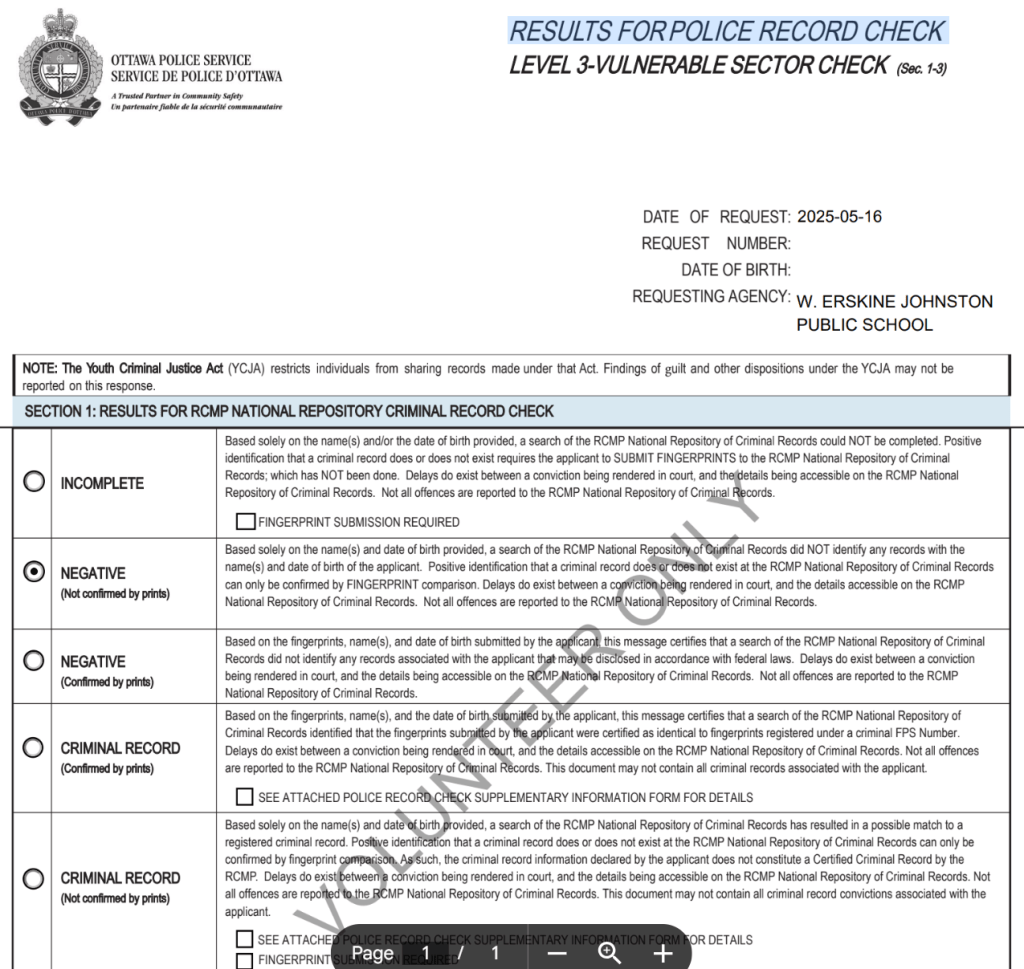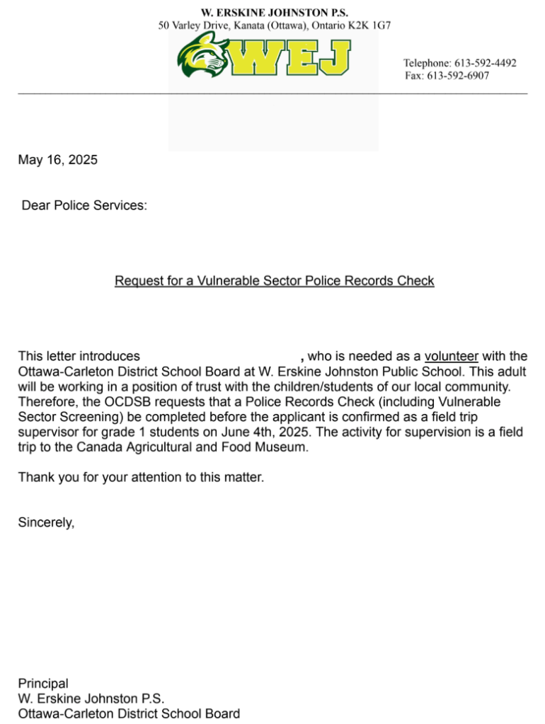 Mình volunteer phụ cô giáo Bơ dẫn cả lớp đi nông trại. Để được đi chung với lớp, mình cần phải làm Level-3 Vulnerable Sector Check với Ottawa Police Service.